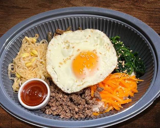 韓国お食事の定番、ヘルシー野菜ナムルとそぼろ肉がたっぷり特製コチュジャンソースを入れてお楽しみください。